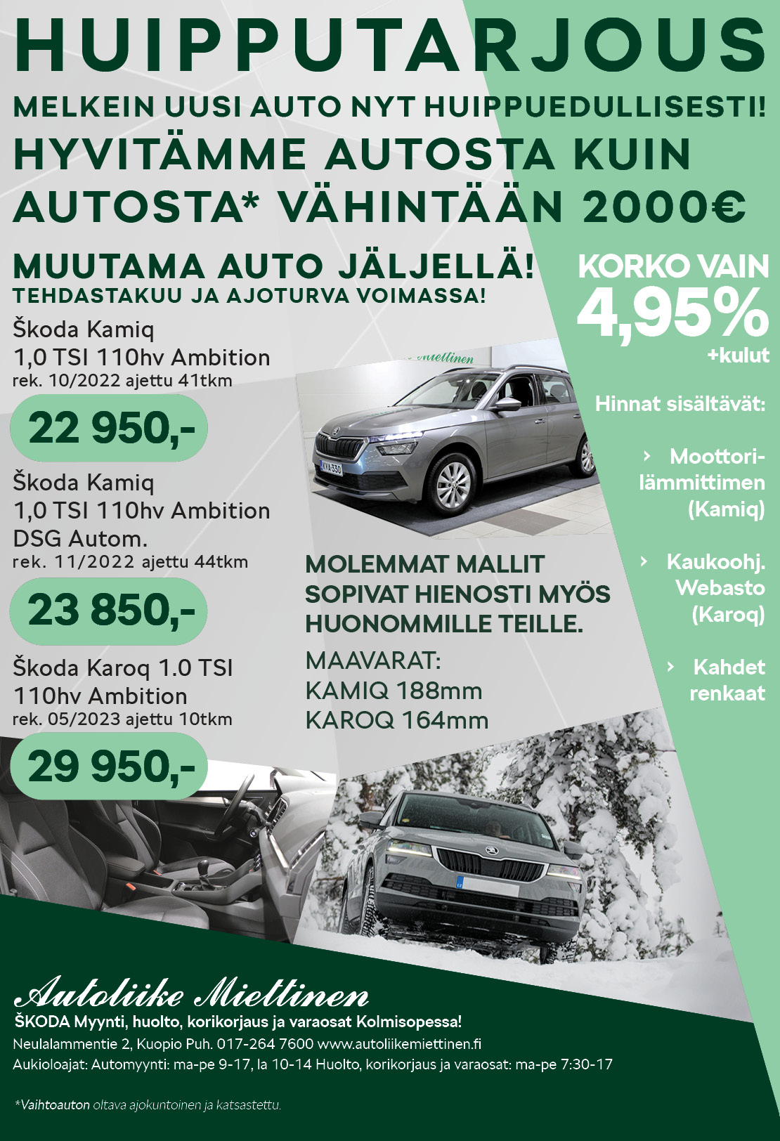 Škoda-maahantuoja Helkama-Auto Oy on nimennyt Autoliike Miettisen vuoden 2023 Škoda-jälleenmyyjäksi!